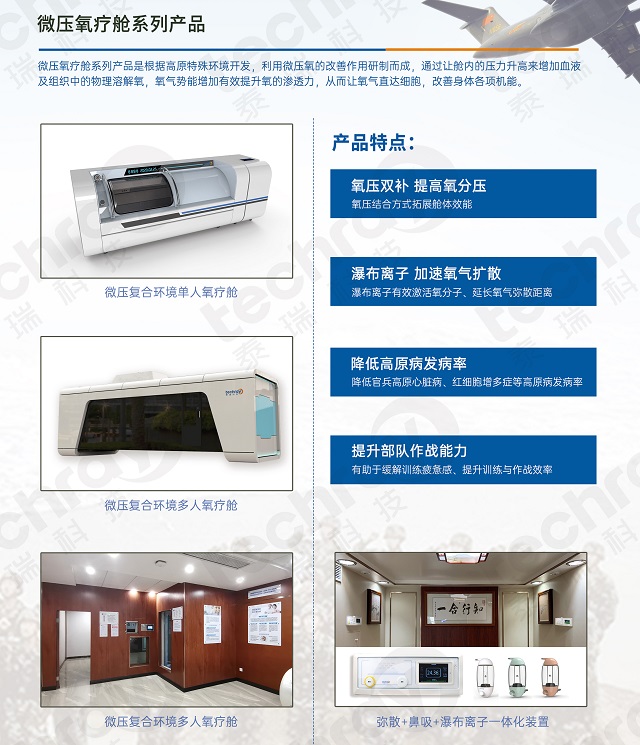 1、氧壓結合:通過加壓氧艙吸氧,方便,舒適,可快捷提高氧分壓,達到海軍身體氧供區域的“全覆蓋”;